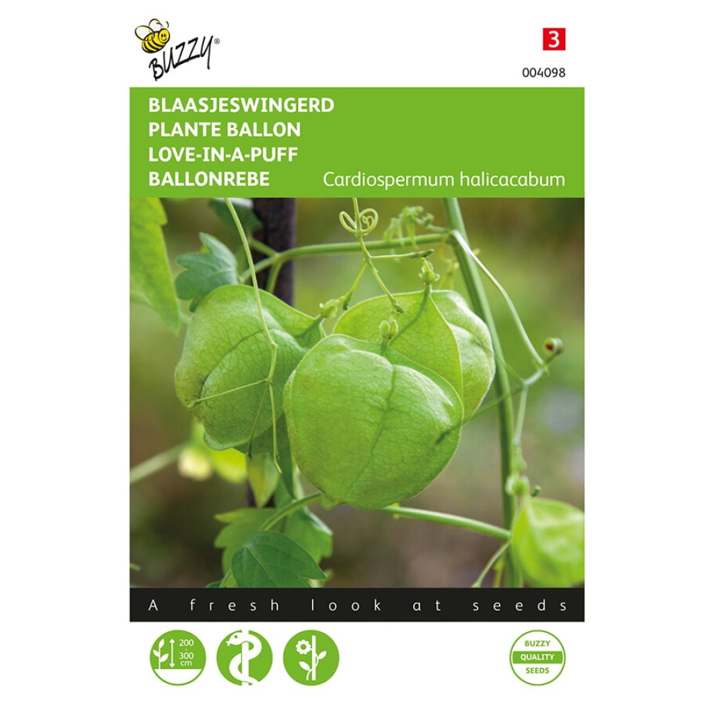 Blaasjeswingerd Zaaien vanaf februari of maart onder glas, week wel de zaden eerst 24 uur in lauw water. Uitplanten in mei. Een snelle klimmer en kan wel tot 3 meter hoog worden, ideaal om een kale muur of schutting te bedekken. Geeft bijzondere vruchten met donkerbruine zaden en een wit hart. De extracten van de plant werken ontstekings-, pijn- en jeukremmend.