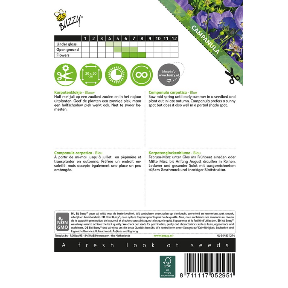 Campanula carpatica - Blue Sow mid spring until early summer in a seedbed and plant out in late autumn. Campanula prefers a sunny spot but does it also well in a partial shade spot.
