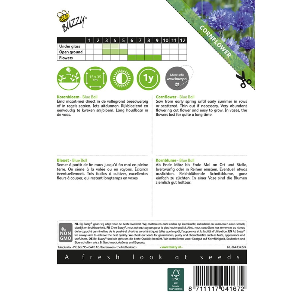 Cornflower - Blue Ball, double flowered Sow from early spring until early summer in rows or scattered. Thin out if necessary. Very abundant flowering cut flower and easy to grow. In vases, the flowers last for quite a long time.