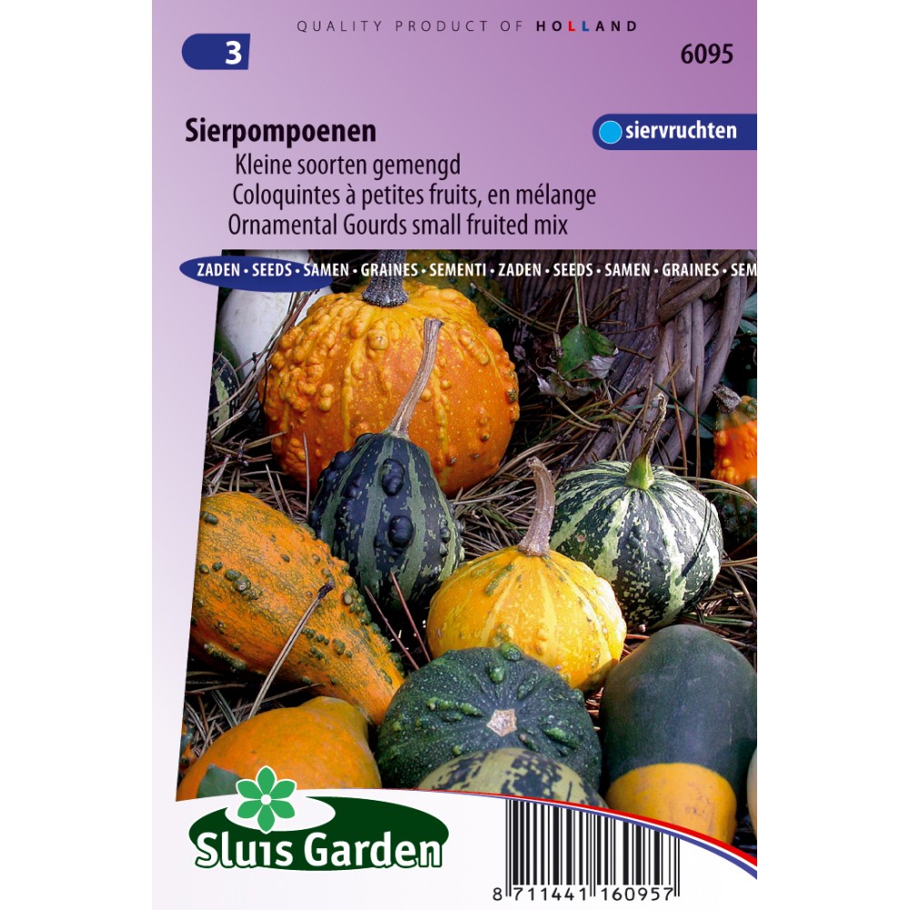 Small fruited mixture in many forms and colours. Sow in a greenhouse in warm conditions. Press the seeds into the soil and cover lightly with soil. Once emerged allow to develop for a while, harden off and transplant to final spot (preferably in fertile soil). Take care of night frost. Most of the fruits can be kept for a reasonably long time. Dry the fruits in a cool and dark place.