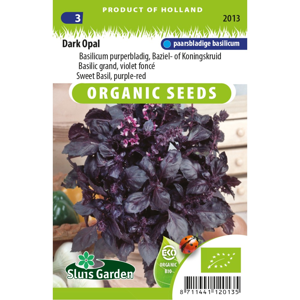 Organically grown seeds. The large leaves are bluish purple and highly aromatic. Looks wonderful in a pot together with a large-leaved green basil plant. Also very popular as a sprout vegetable. Produces purple blooms at the end of the season. Delicious in rice dishes, etc. and decorative in basil vinegar. Sow in a greenhouse. Do not cover the seeds. Press them gently and keep moist. Once the plants are large enough, transplant into pots and boxes, or in a warm spot in the garden.