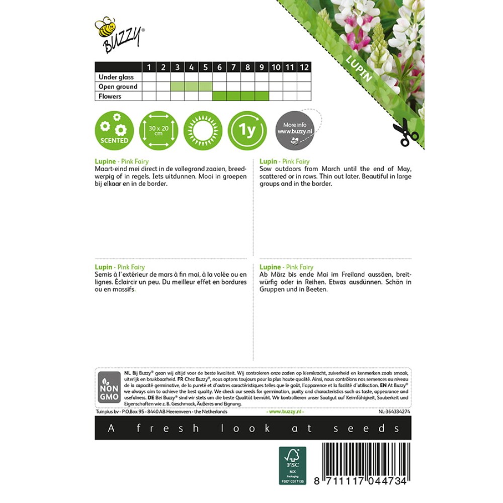 Lupin - Pink Fairy Sow outdoors from March until the end of May, scattered or in rows. Thin out later. Beautiful in large groups and in the border.