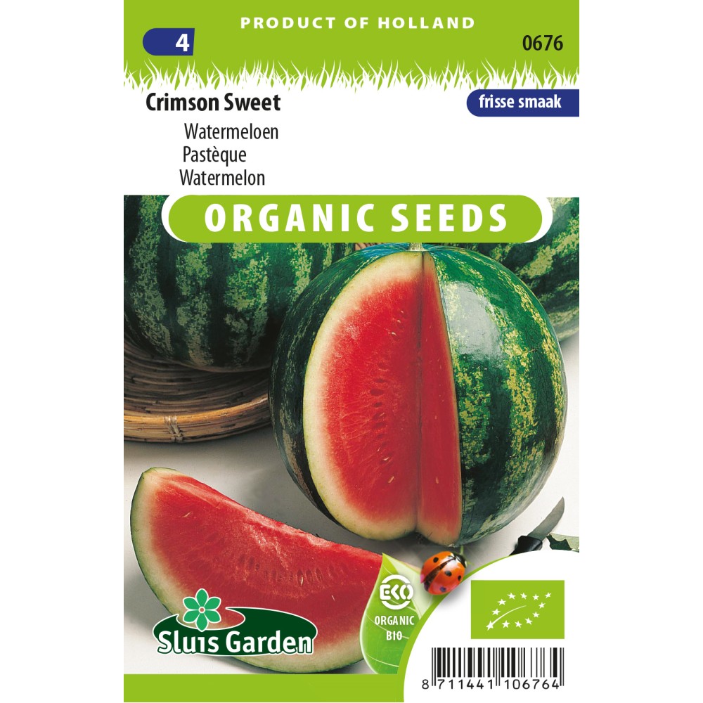 Organically grown seeds. This splendid watermelon with its dark green stripes is known for its delicious taste and high sugar content. Has good resistance to diseases and can be grown reasonably well outside during warm summers. In central and northern Europe cultivation in a cold greenhouse is more likely to produce good results. If required, help with pollination. Can produce fruits that weigh more than 10 kg. Snip off the heads after 4 real leaves in order to give the plant the chance of producing some hefty fruits.