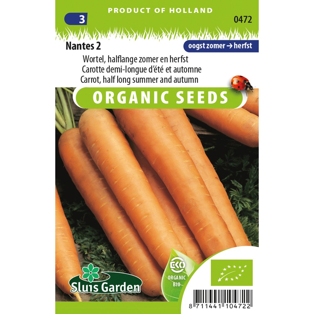 Organically grown seeds. A long and firm summer carrot. Keeps well for a reasonably long period. Produces shiny orange carrots approx. 22 cm in length. Has a pleasantly sweet taste. Sow thinly in rows. After emergence do not thin out. Ensure the soil is worked well deeply, so that the carrot can develop without interruption. Fertilize normally and do not use any fresh farmyard manure.