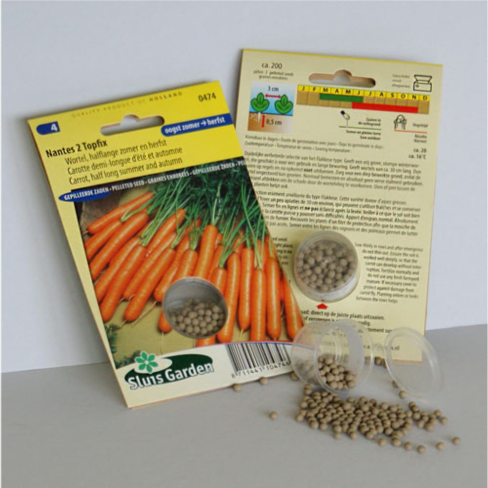 A long and firm summer carrot, which is also suitable for somewhat heavier soil. Keeps well for a reasonably long period. Produces shiny orange carrots approx. 22 cm in length. Has a pleasantly sweet taste. Sow thinly in rows. After emergence do not thin out. Ensure the soil is worked well deeply, so that the carrot can develop without interruption. Fertilize normally and do not use any fresh farmyard manure. If necessary cover to protect against damage from carrot fly. Planting onions or leeks between the rows helps.