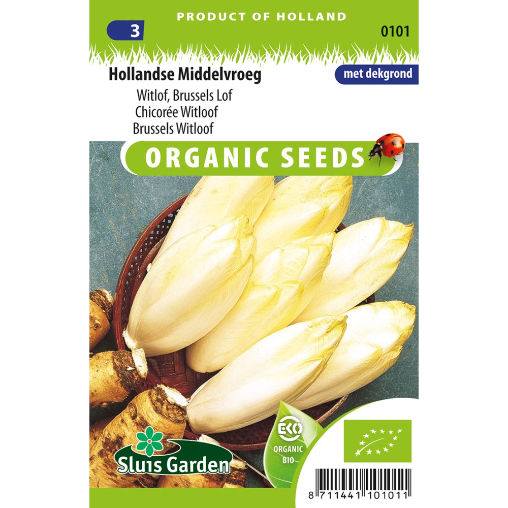 Organically grown seeds. Suitable for cultivation with casing soil from December to March. Sow on well worked soil. Thin out upon emergence. Harvest roots in late October. Allow the roots to die off for a few days on the soil. Cut the foliage of the root 2 cm above the head. As of late November to March stand the roots in a box or bucket. Keep in complete darkness, otherwise they become green. Forcing duration at approx. 16°C is 4 to 5 weeks.