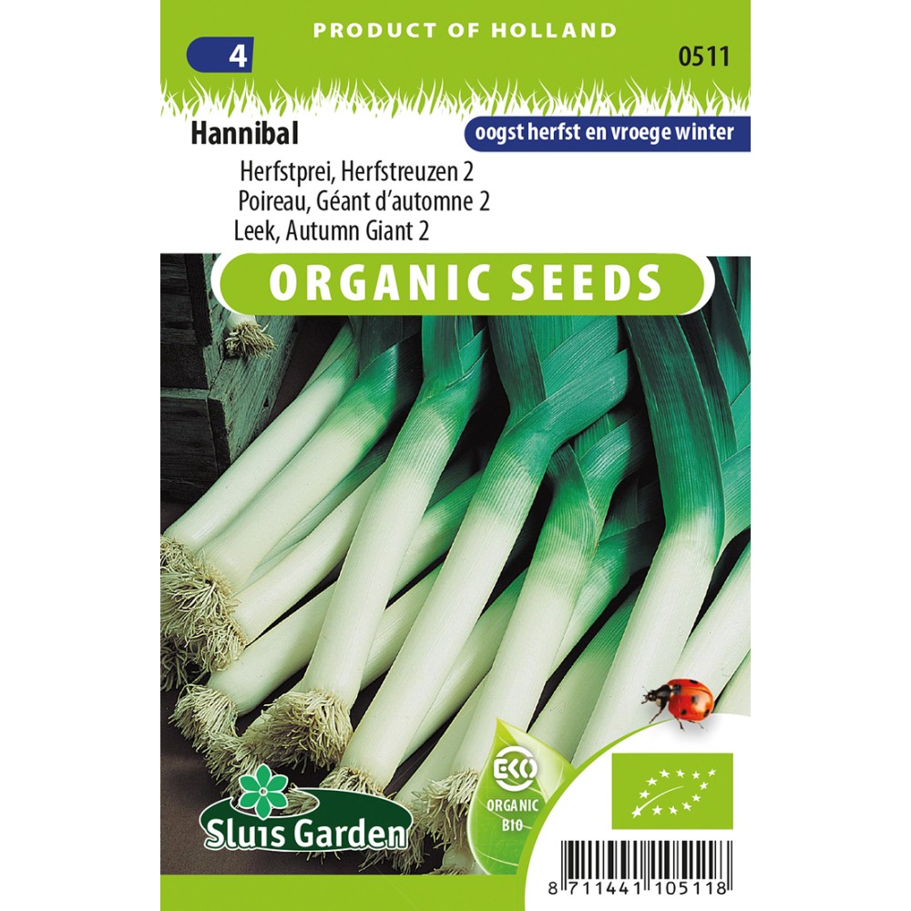 Organically grown seeds. Market garden selection. A late autumn leek which can be harvested up to mid winter. Produces an approx. 25-cm long, dark green leek. Has good resistance, and can be stored for a long time after harvesting. Best sown in a greenhouse or in the garden in seedbeds up to mid June. Sow thinly. When the plants are a pencil’s thickness, transplant to a plant hole 18 cm deep. Allow the plant and roots to reach the bottom, and water a little. The plant hole fills as the plant grows.