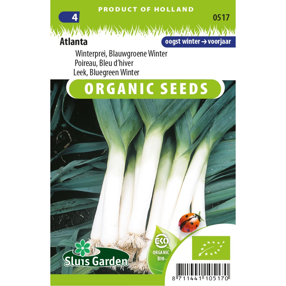 Market gardeners selection. A winter leek with excellent frost resistance. Can be harvested until the end of winter. Produces an approx. 25-cm long, dark green leek. Very good resistance, and can be stored for a long time after harvesting. Best sown in a greenhouse or in the garden in seedbeds up to mid June. Sow thinly. When the plants are a pencil's thickness, transplant to a plant hole 18 cm deep. Allow the plant and roots to reach the bottom, and water a little. The plant hole fills as the plant grows. Organically grown seeds * This seed has been grown, cleaned and packed according to the organic production method, which has been set by the SKAL Foundation, our number 026035 / N L-BIO-01