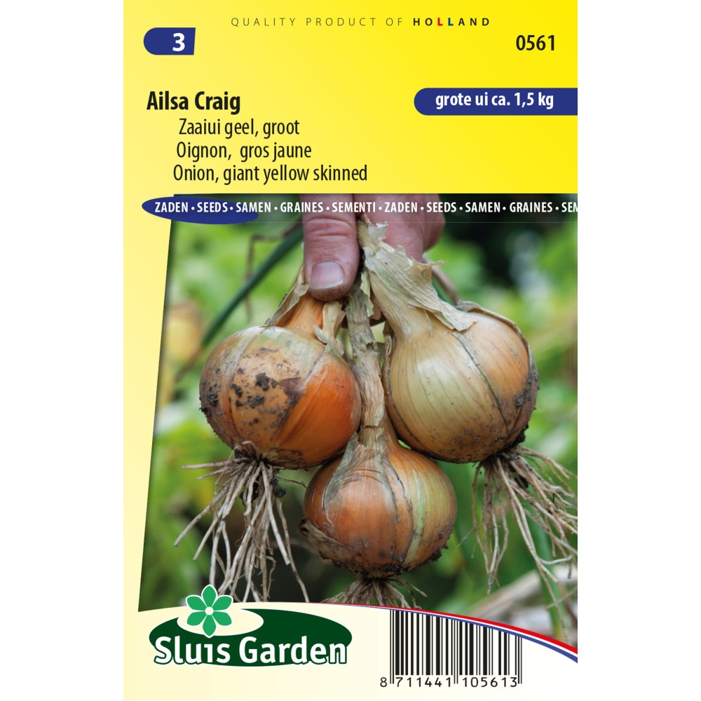 Ailsa Craig produces very large, round onions, often up to 1–1.5 kg. The taste of this onion is mild to nice and slightly sweet. These onions can also be stored reasonably well. Sow thinly directly in the garden in rows and cover the seed well. Keep the soil moist constantly. After emergence do not thin out too much. Harvest the onions once the foliage has died off. Allow the onions and foliage to dry on the field for 1 week.