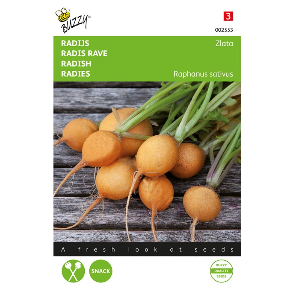 to develop properly. Zlata is a yellow radish with crunchy and spicy white flesh.