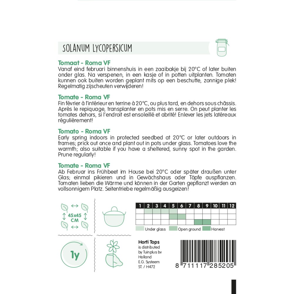 Early spring indoors in protected seedbed at 20°C or later outdoors in frames; prick out once and plant out in pots under glass. Tomatoes love the warmth; also suitable if you have a sheltered, sunny spot in the garden. Prune regularly!