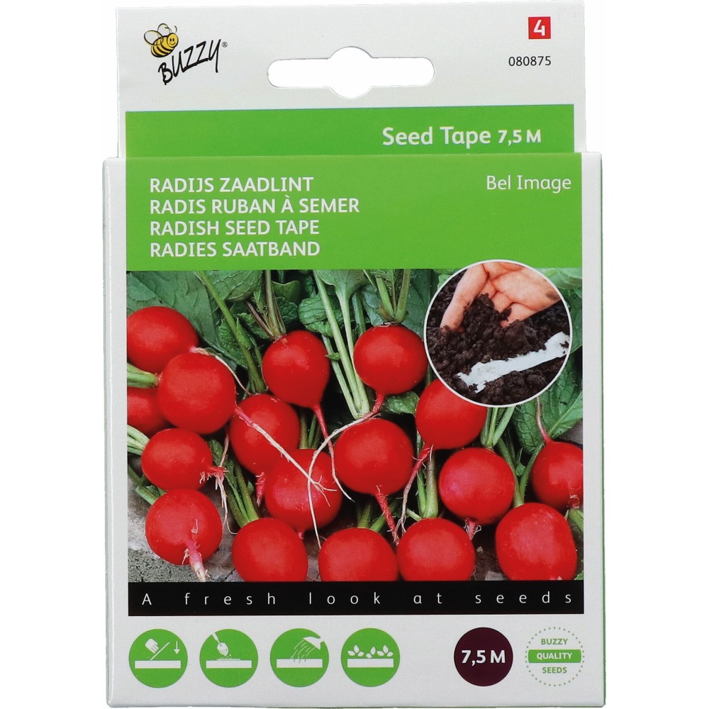 7,5 metres of seed tape, pre-sown with Radish, ready for use in the garden.