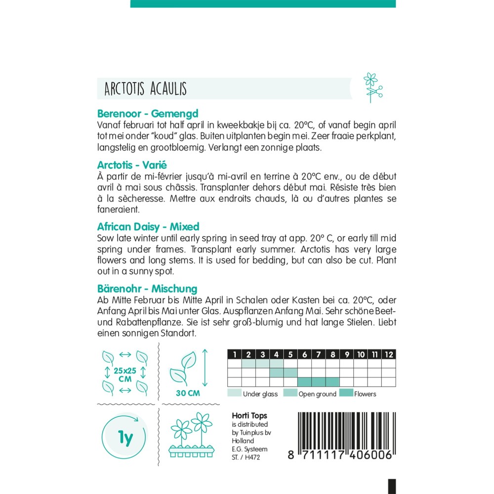 African Daisy - Mixed Sow late winter until early spring in seed tray at app. 20º C, or early till mid spring under frames. Transplant early summer. Arctotis has very large flowers and long stems. It is used for bedding, but can also be cut. Plant out in a sunny spot.