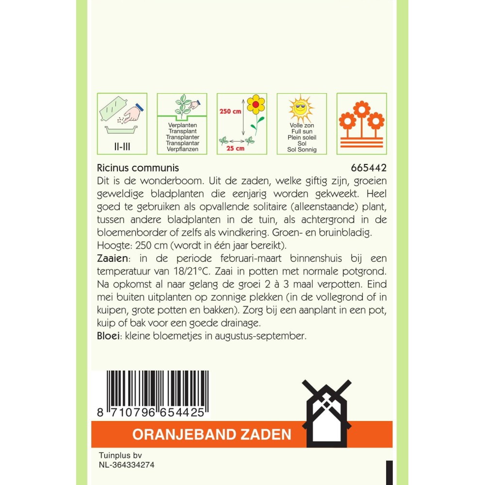 Oranjeband® Ricinus Communis Zanzibariensis