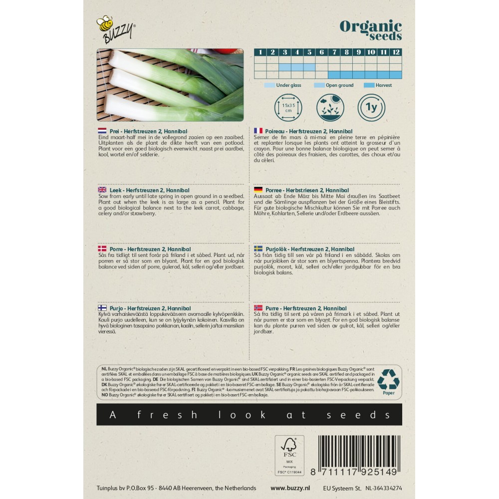 Buzzy® Organic Poireau Herfstreuzen 2, Hannibal(BIO)
