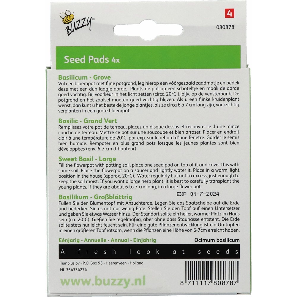 Buzzy® Disque à semer Basilic 4x 8cm