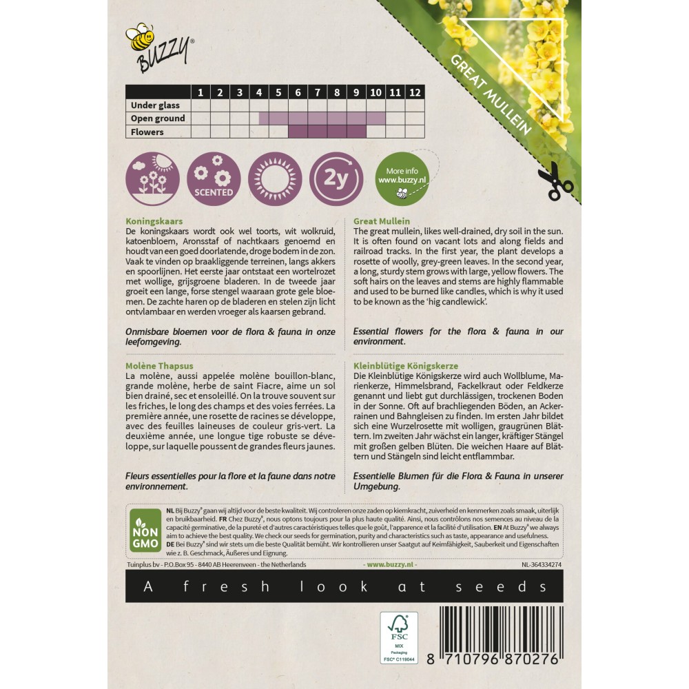 La molène, aussi appelée molène bouillon-blanc, grande molène, herbe de saint Fiacre, aime un sol bien drainé, sec et ensoleillé. On la trouve souvent sur les friches, le long des champs et des voies ferrées. La première année, une rosette de racines se développe, avec des feuilles laineuses de couleur gris-vert. La deuxième année, une longue tige robuste se développe, sur laquelle poussent de grandes fleurs jaunes.