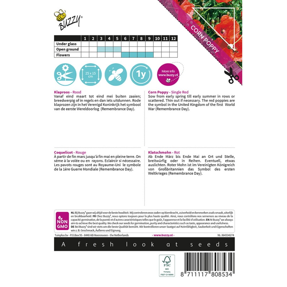 Buzzy® Poppy Flowers, Coquelicot Simple rouge