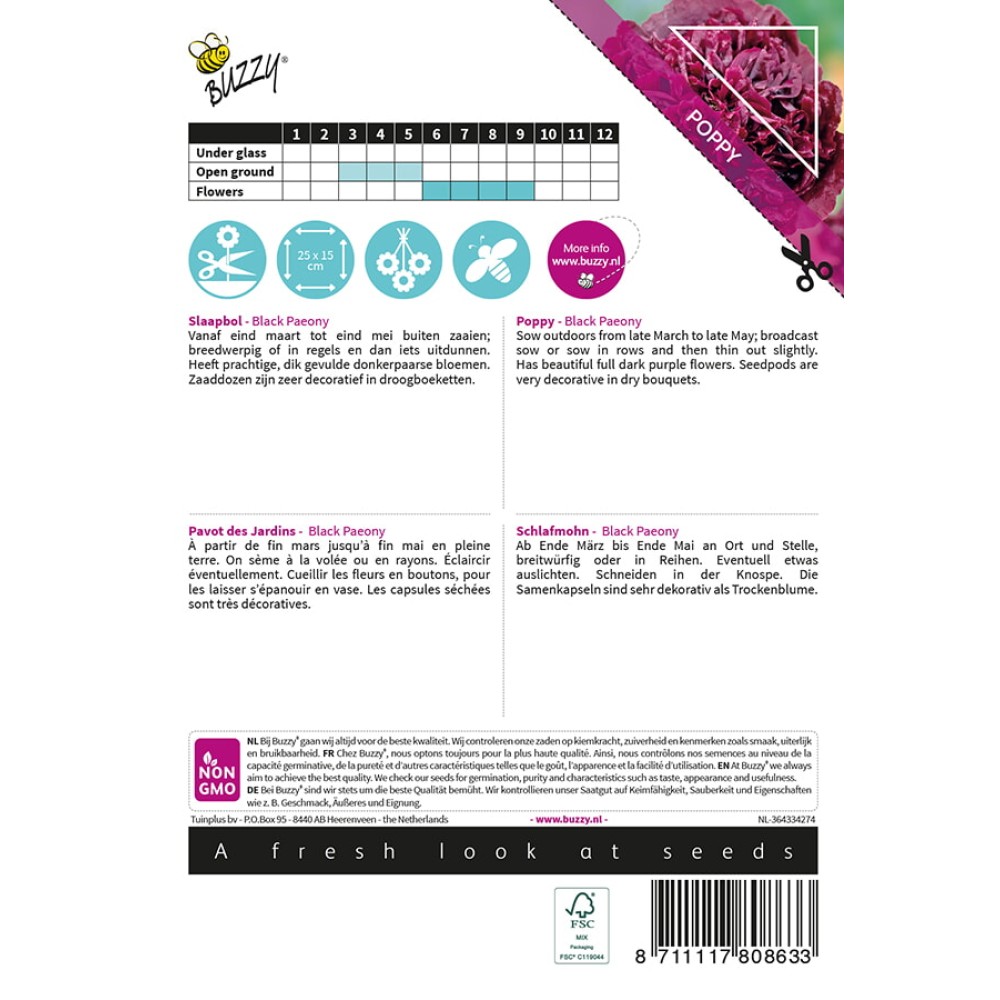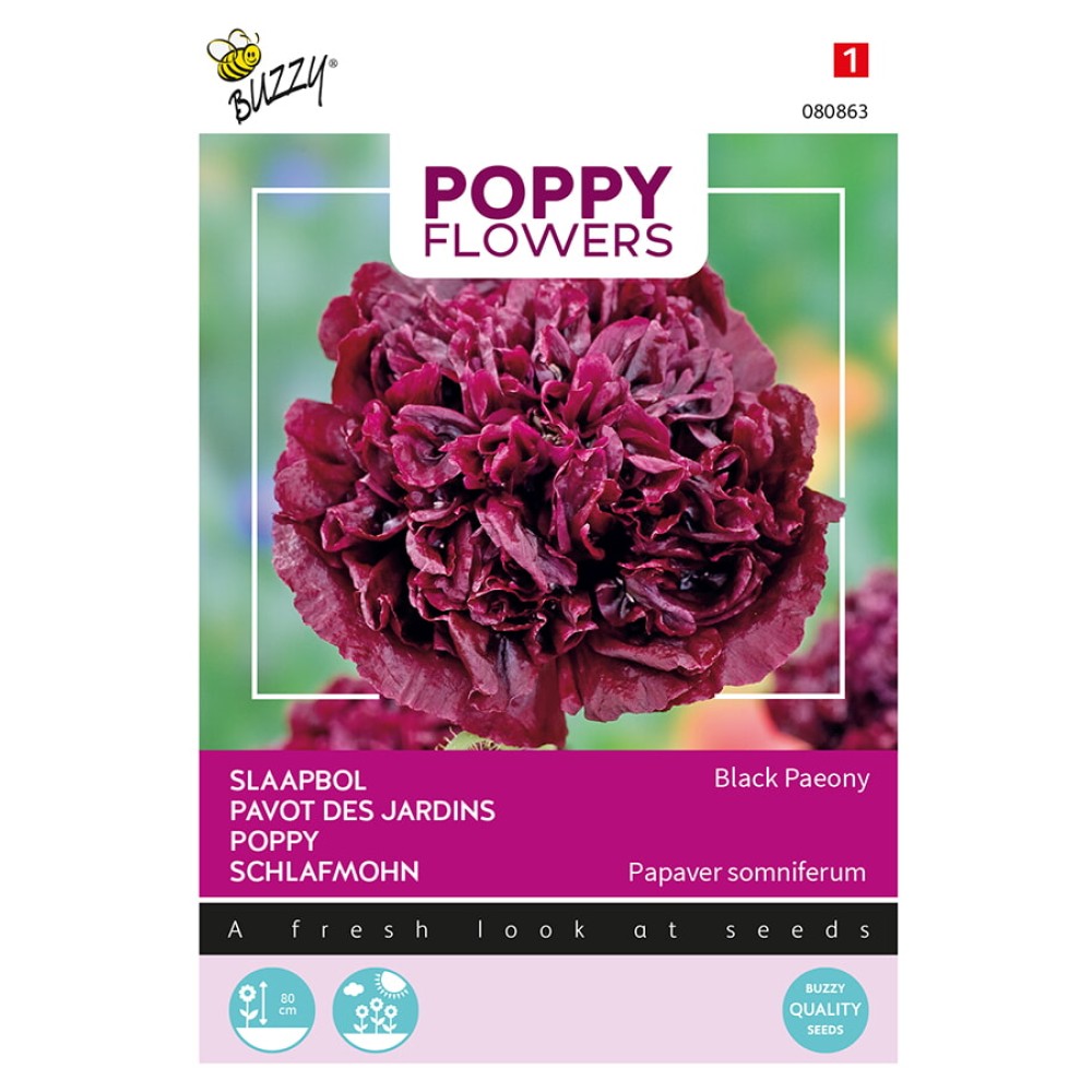 Buzzy® Poppy Flowers, Pavot Black Paeony