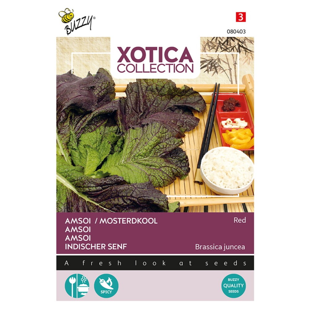 La moutarde chinoise a des grandes feuilles souples qui ont une saveur corsée. Pour récolter, couper les feuilles pas trop près du pied de la plante, ainsi il sera possible d’avoir plusieurs coupes. Les jeunes feuilles se mangent en salade, ou sont préparées dans le wok.