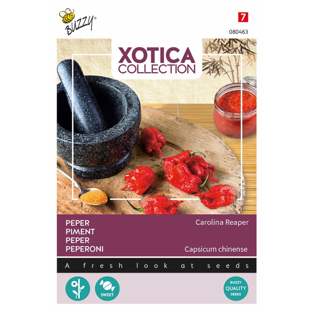 intensément piquante et fruitée. Ajoutez beaucoup de piquant à vos plats, et utilisez les piments dans les sauces piquantes, pour l’huile pimentée, ou faitesen de la poudre ou des flocons.