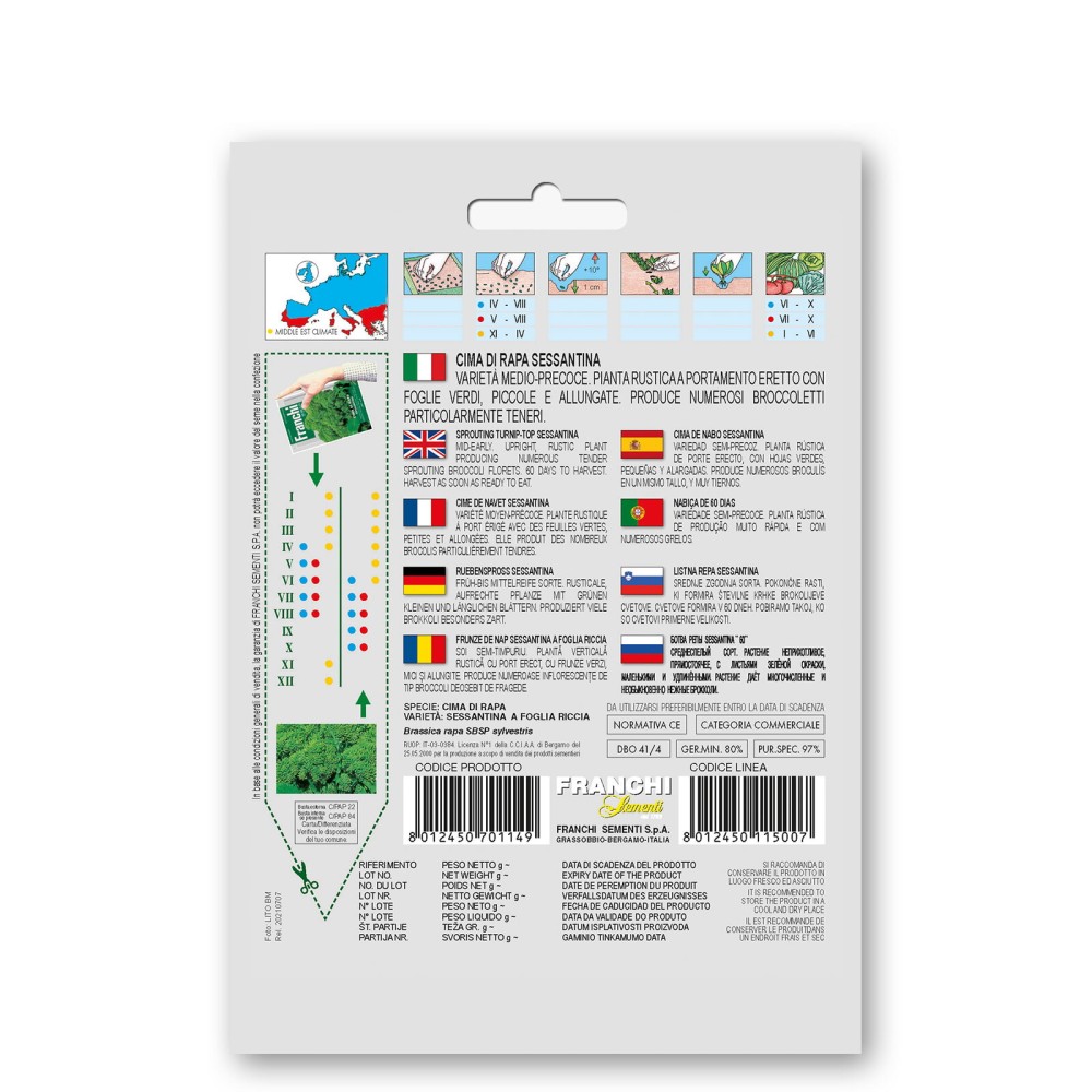 Un vieux légume italien populaire, où l'on mange à la fois les feuilles (légèrement épicées) et la fleur jaune presque fleurie (comme le brocoli). La Cima di Rapa, comme l'appelle l'italien, est étroitement liée aux variétés de chou à fleurs en Extrême-Orient. Cette variété produit une grande récolte de petites tiges de fleurs. Semis: en rangs fin juin immédiatement sur le lieu de croissance.