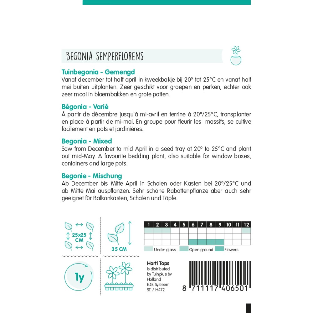 Bégonia - Varié À partir de décembre jusqu’à mi-avril en terrine à 20º/25°C, transplanter en place à partir de mi-mai. En groupe pour fleurir les massifs, se cultive facilement en pots et jardinières.