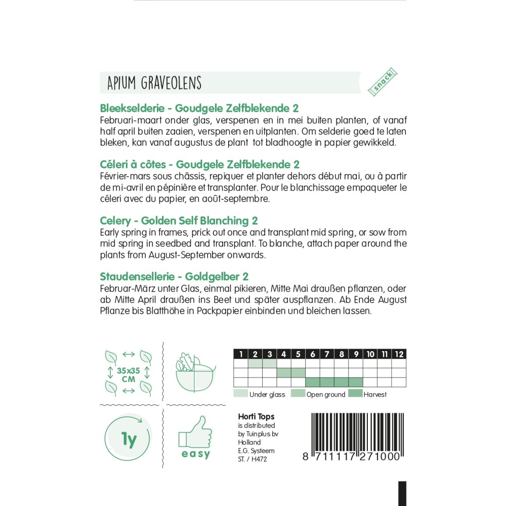 Février- mars sous châssis, repiquer et planter dehors début mai, ou à partir de mi-avril en pépinière et transplanter. Pour le blanchissage empaqueter le céleri avec du papier, en août-septembre.
