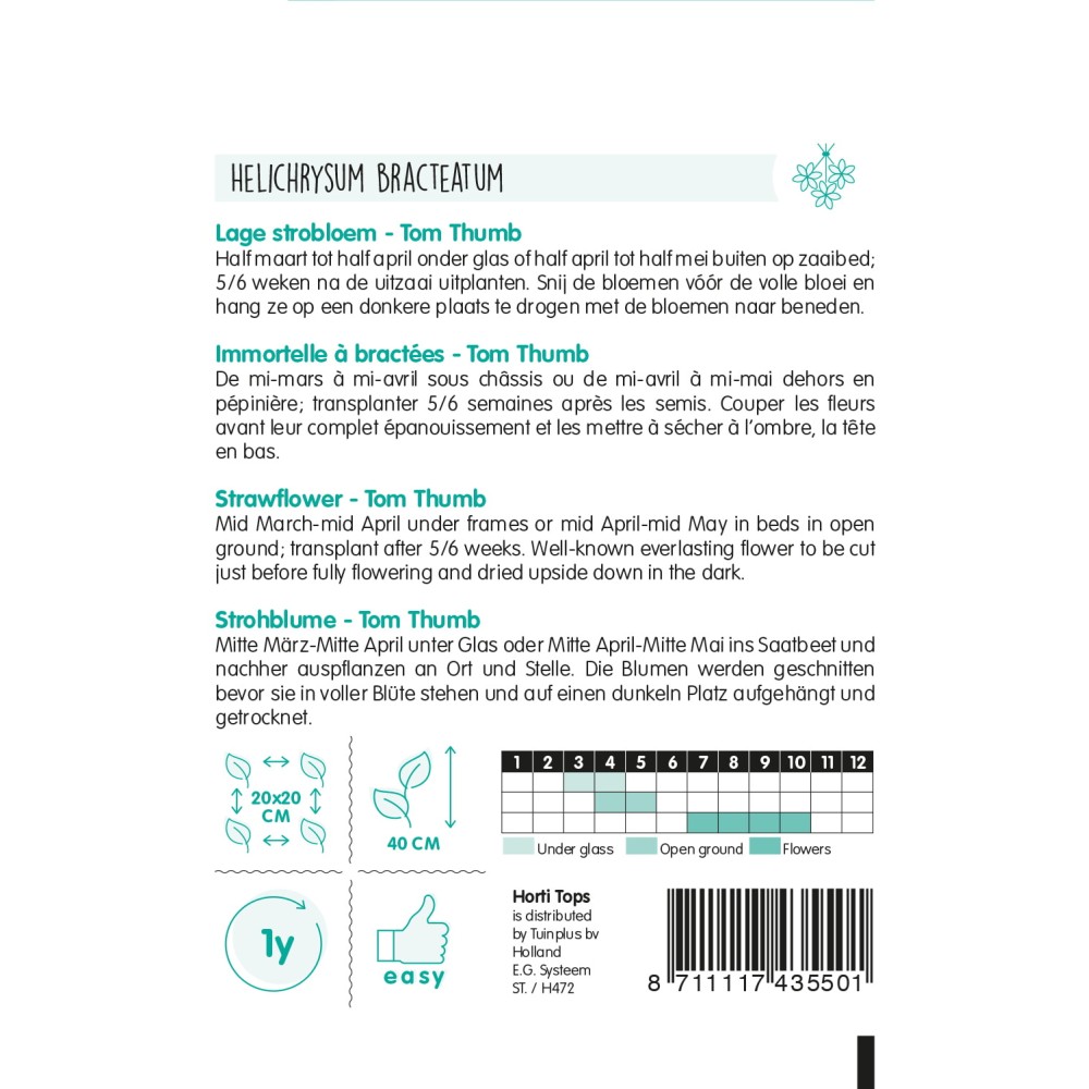De mi-mars à mi-avril sous châssis ou de mi-avril à mi-mai dehors en pépinière; transplanter 5/6 semaines après les semis. Couper les fleurs avant leur complet épanouissement et les mettre à sécher à l’ombre, la tête en bas.