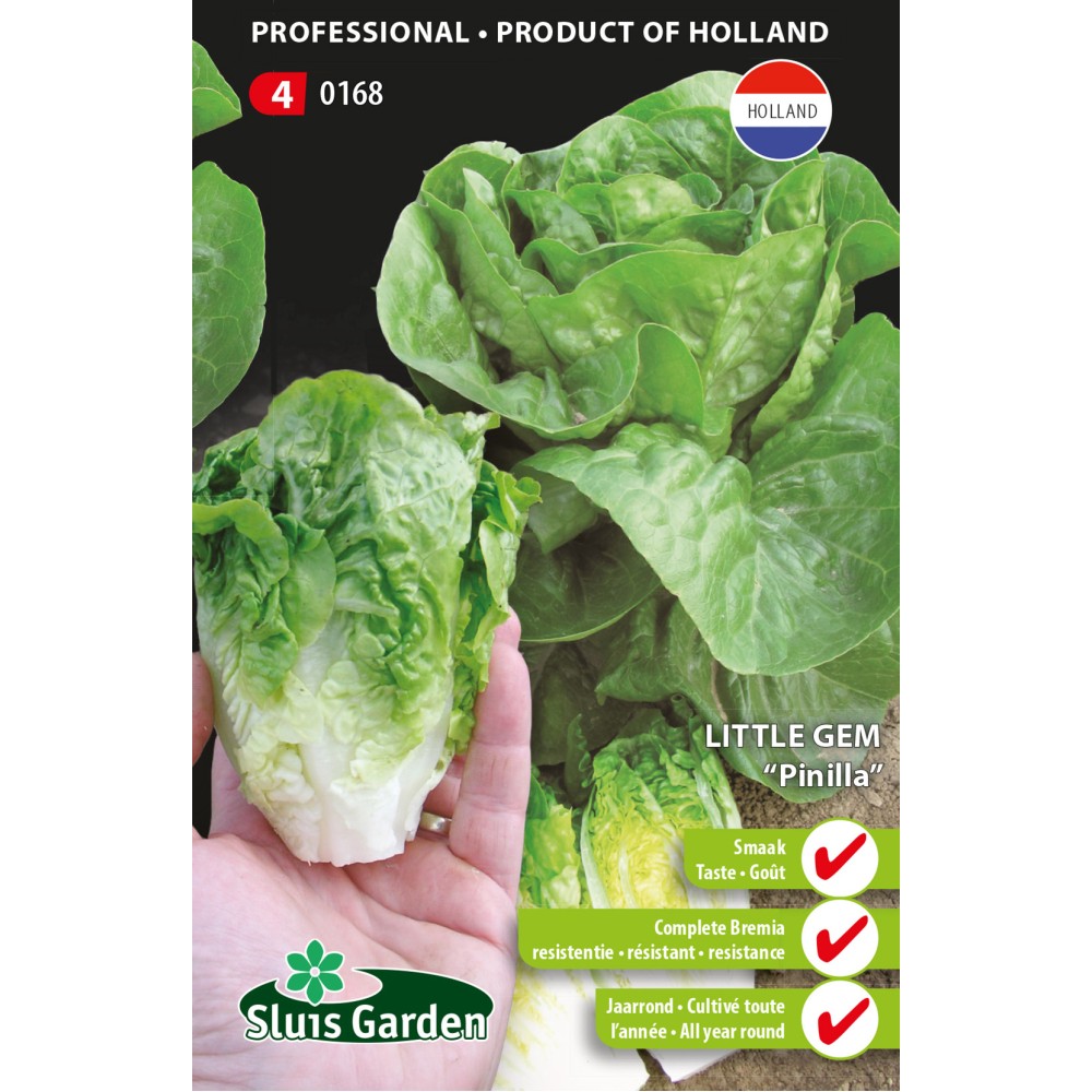 Pinilla is een echte Little Gem, maar door vele jaren selectiewerk nu met een zeer goede vorstresistentie. Vandaar de naam Winter Gem. Hierdoor is het nu mogelijk om Pinilla ook in de winter in een koude kas te zaaien en te oogsten. Buiten deze periode kan u zaaien in de vollegrond voor oogst in voor- en najaar. Pinilla heeft een mooi compact hart met een heerlijk zoete smaak. Goed resistent tegen diverse ziektes.