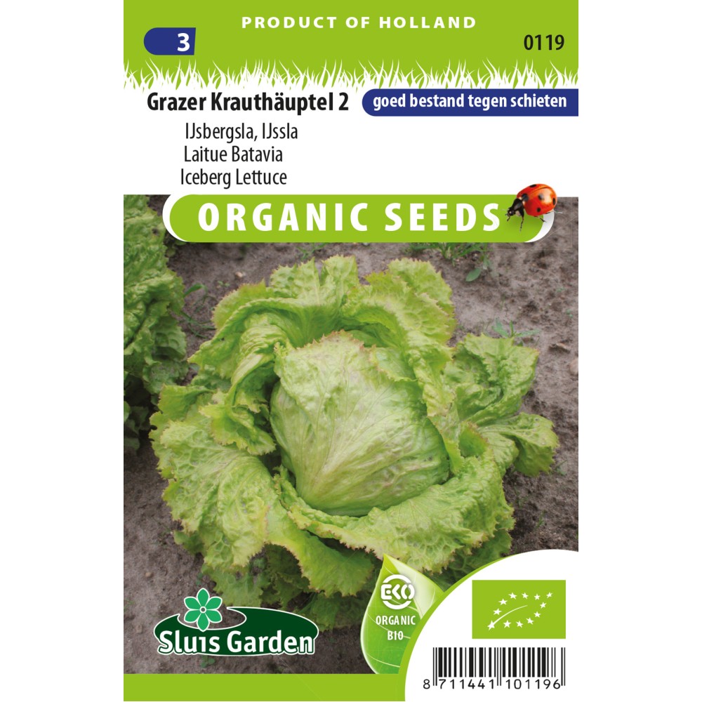 Biologisch geteelde zaden. Grazer Krauthäuptel 2 is afkomstig uit de regio rond de stad Graz (Oostenrijk). Dit betrouwbare ras heeft licht gekartelde bladranden en een dunne roodrand. Heerlijk van smaak, lekker knapperig en zeer goed bestand tegen schieten. De kroppen zijn gekoeld lang houdbaar. Zaaien vanaf maart onder glas en vanaf eind maart kan ter plaatse op de tuin worden gezaaid. Ruim uitdunnen en bij droog weer voldoende vochtig houden. Sla kan al bij zeer koele temperaturen (> 10°C) worden gezaaid.